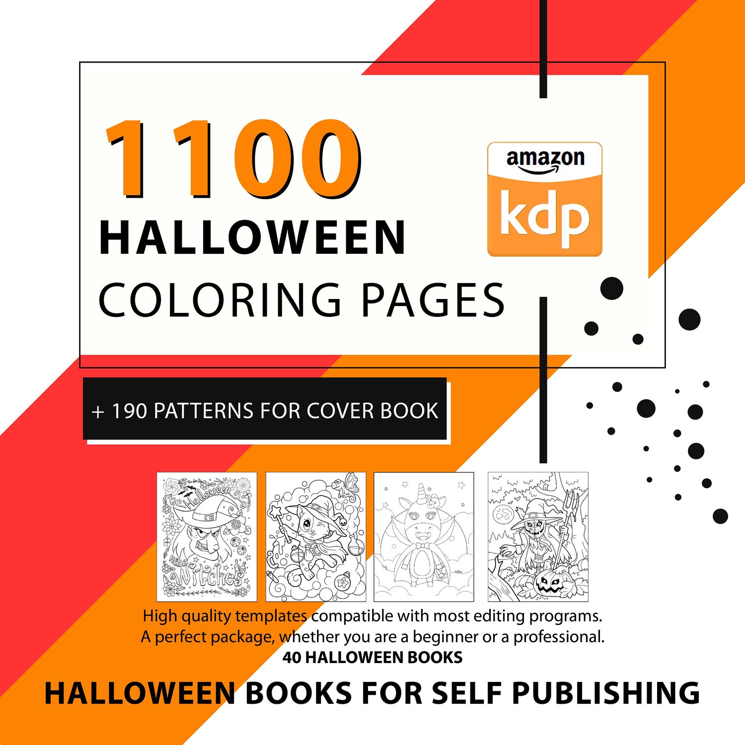 KDP Template BUNDLE | 1100 Fun Coloring Pages Halloween Books | Bonus: 190 Patterns for book covers - Activity Books for all ages