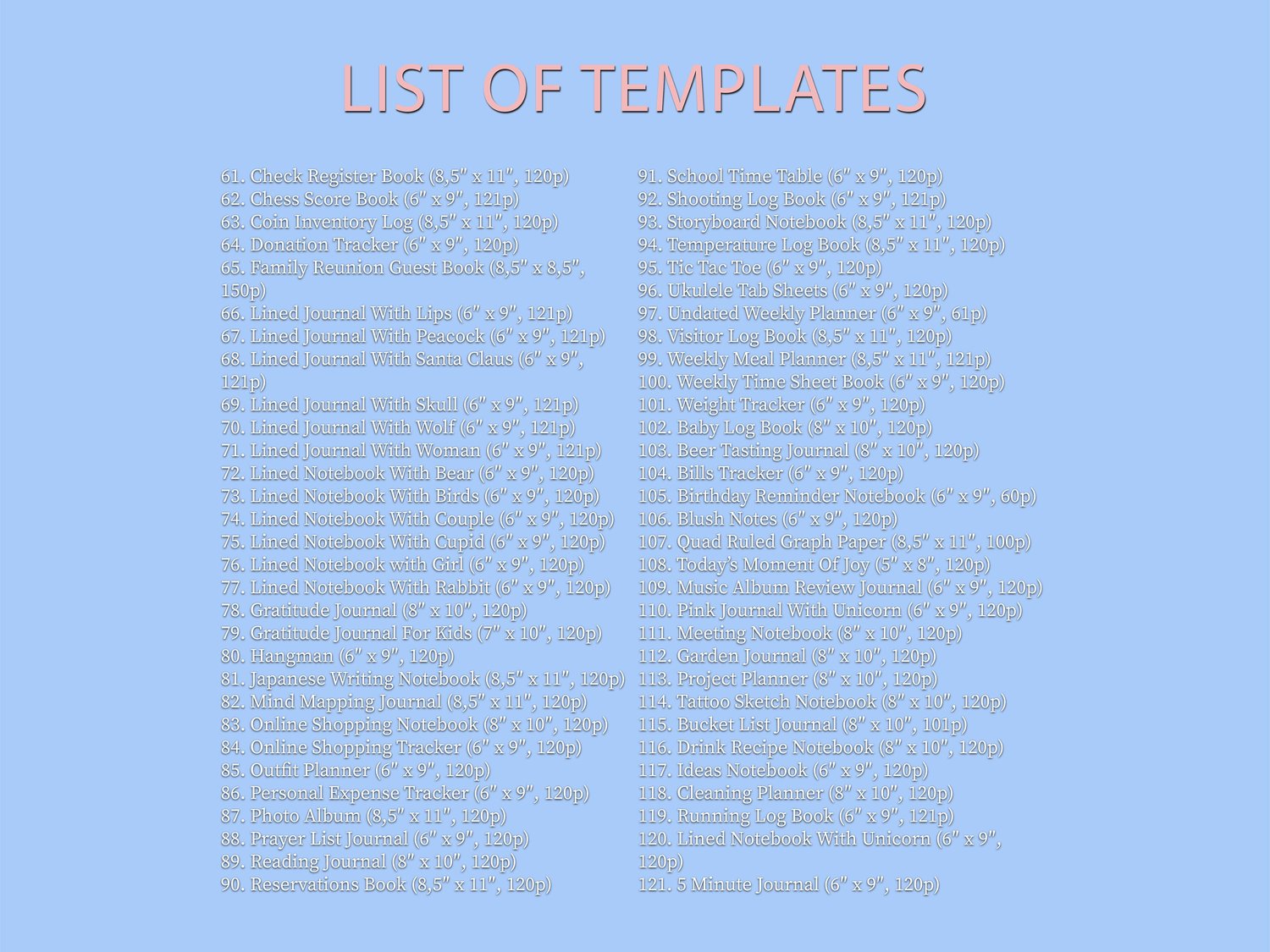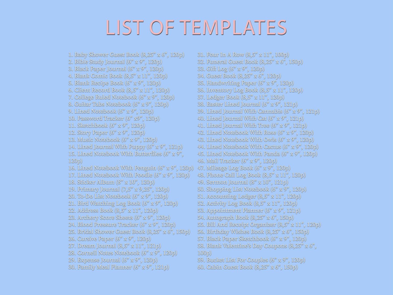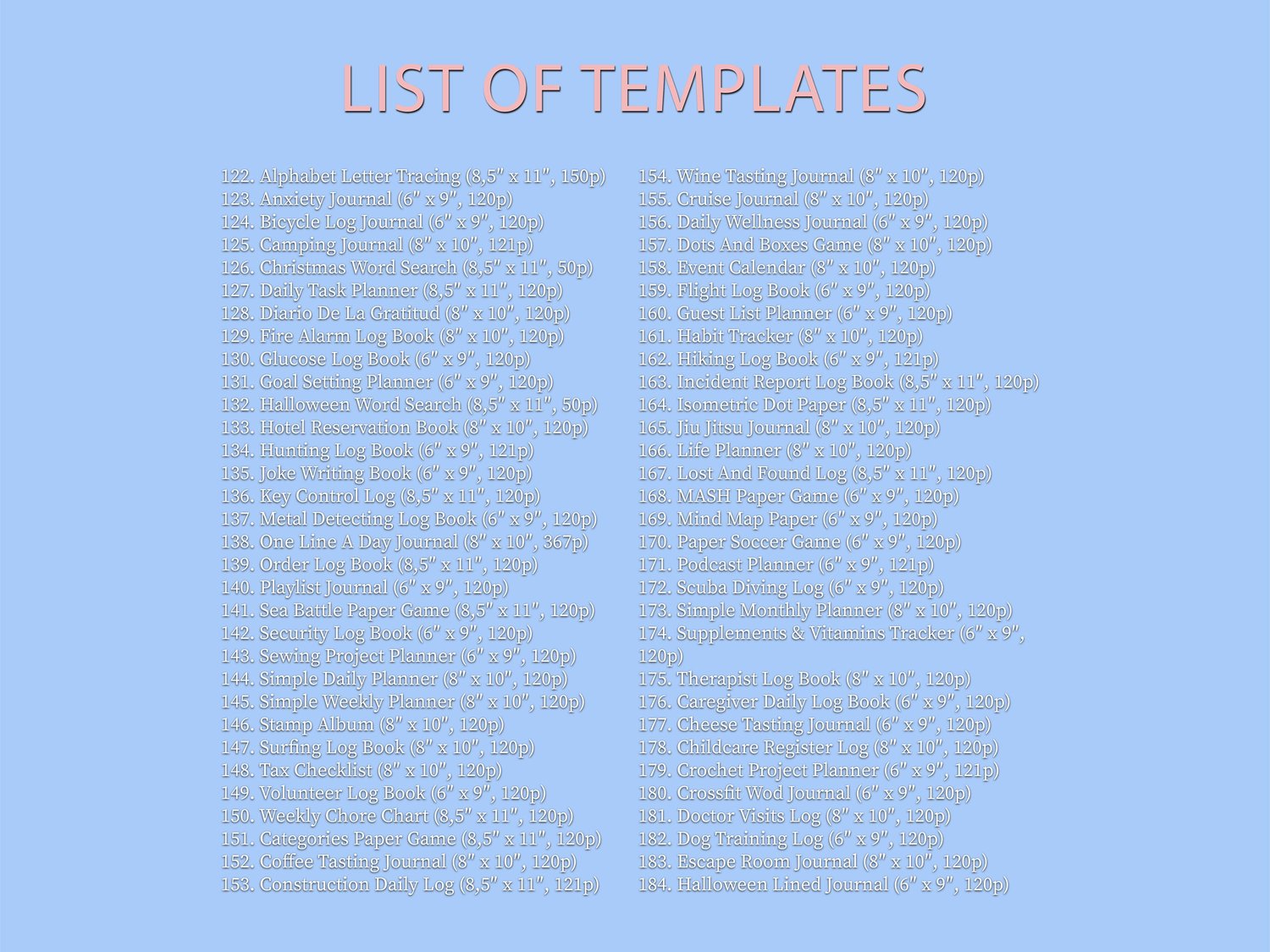 These complete interior templates can be used to create books from any niche on Amazon KDP (Kindle Direct Publishing). Digital files make it easy to create thousands of books. Just add as many pages as you want, a cover, and publish!