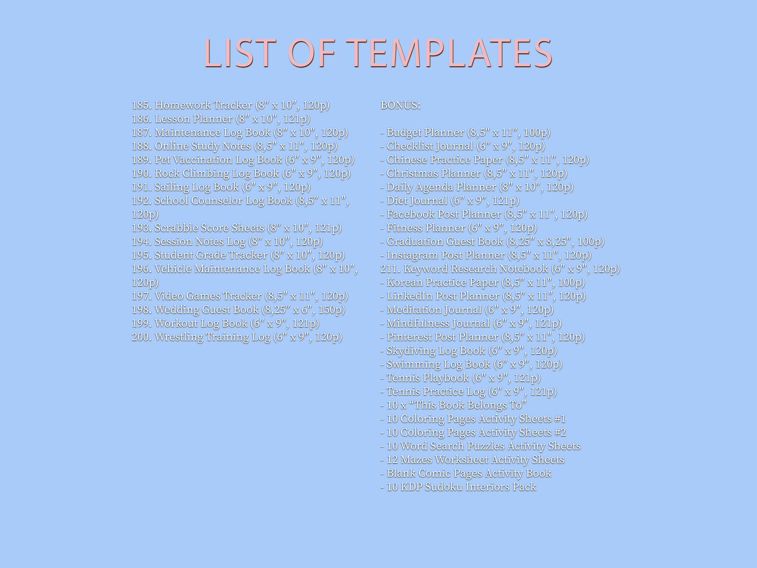 BUNDLE | KDP Interior Templates - Over +200 Low Content Books - Niches and Topics - Designs for Low Content Books (+40 BONUS Templates)